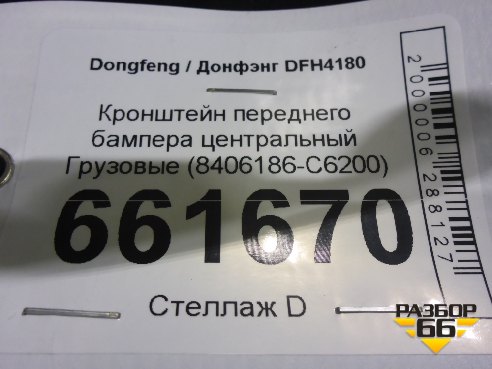 Кронштейн переднего бампера центральный (8406186-C6200) (8406186C6200) для Dongfeng DFH4180 в Перми
