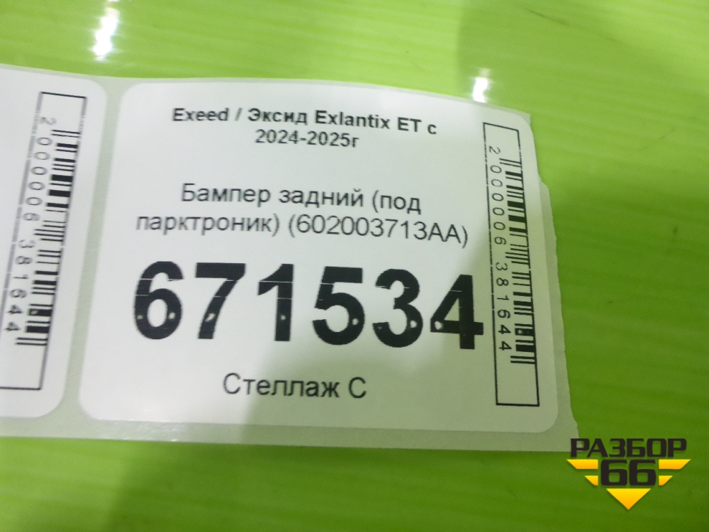 Бампер задний (под парктроник) (602003713AA) для Exeed Exlantix ET с 2024-2025г (ЕТ) в Перми