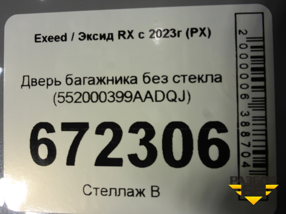 Дверь багажника без стекла (552000399AADQJ) для Exeed RX с 2023г (РХ) в Перми