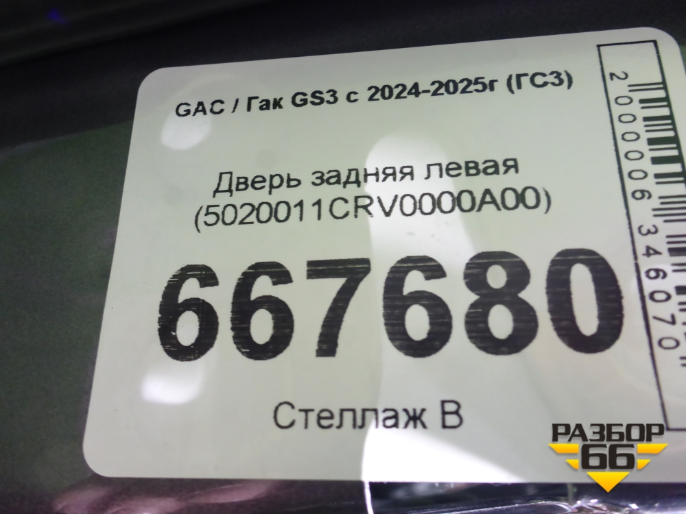 Дверь задняя левая (5020011CRV0000A00) для GAC GS3 с 2024-2025г (ГС3) в Перми