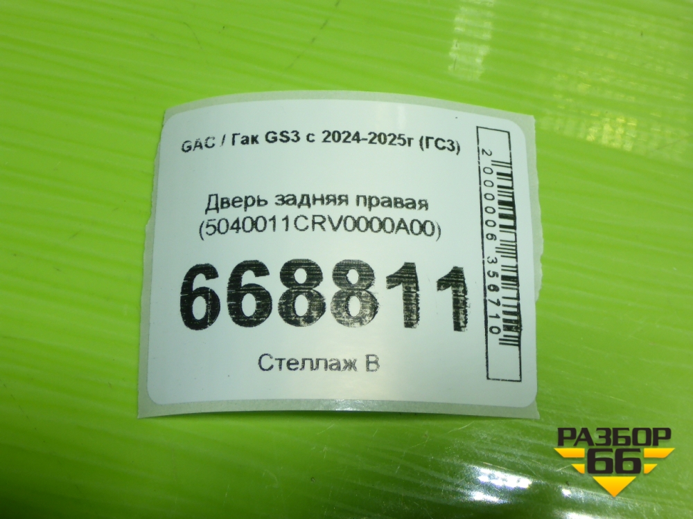 Дверь задняя правая (5040011CRV0000A00) для GAC GS3 с 2024-2025г (ГС3) в Перми
