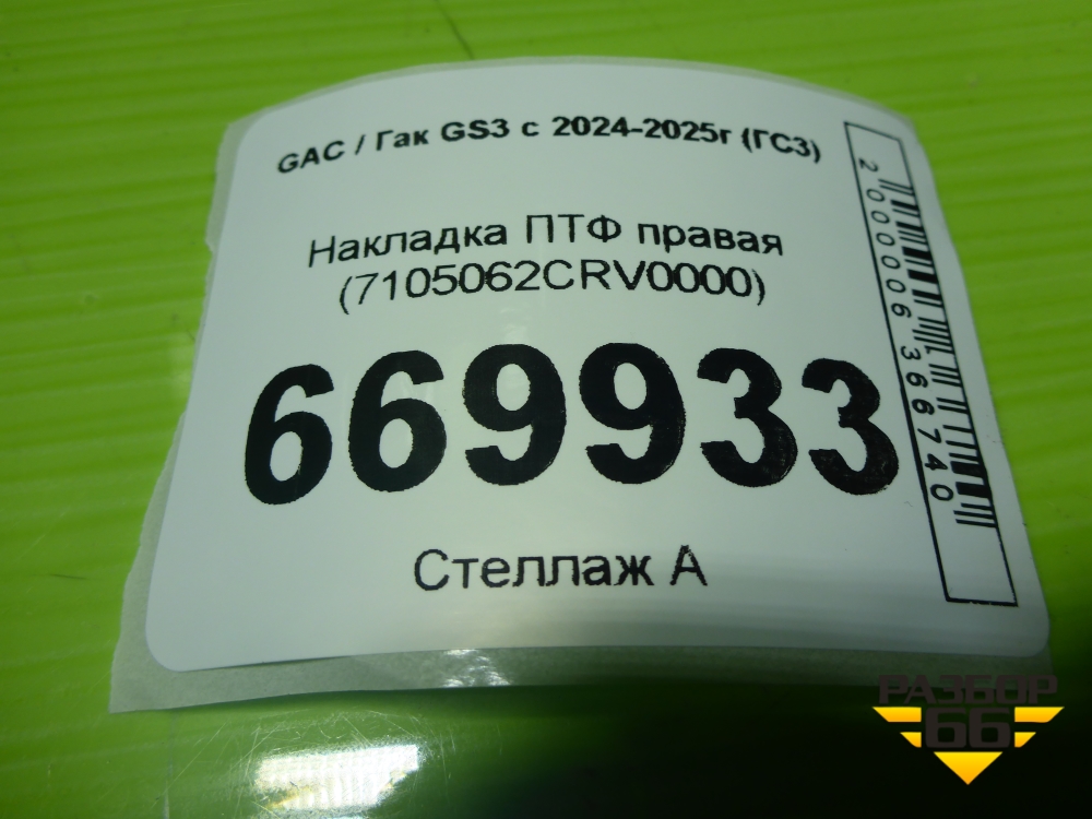 Накладка ПТФ правая (7105062CRV0000) для GAC GS3 с 2024-2025г (ГС3) в Перми