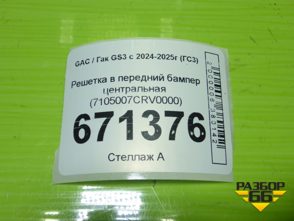Решетка в передний бампер центральная (7105007CRV0000) для GAC GS3 с 2024-2025г (ГС3) в Перми