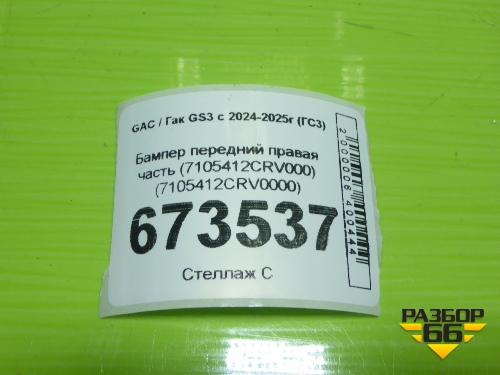 Бампер передний правая часть (7105412CRV000) (7105412CRV0000) для GAC GS3 с 2024-2025г (ГС3) в Перми