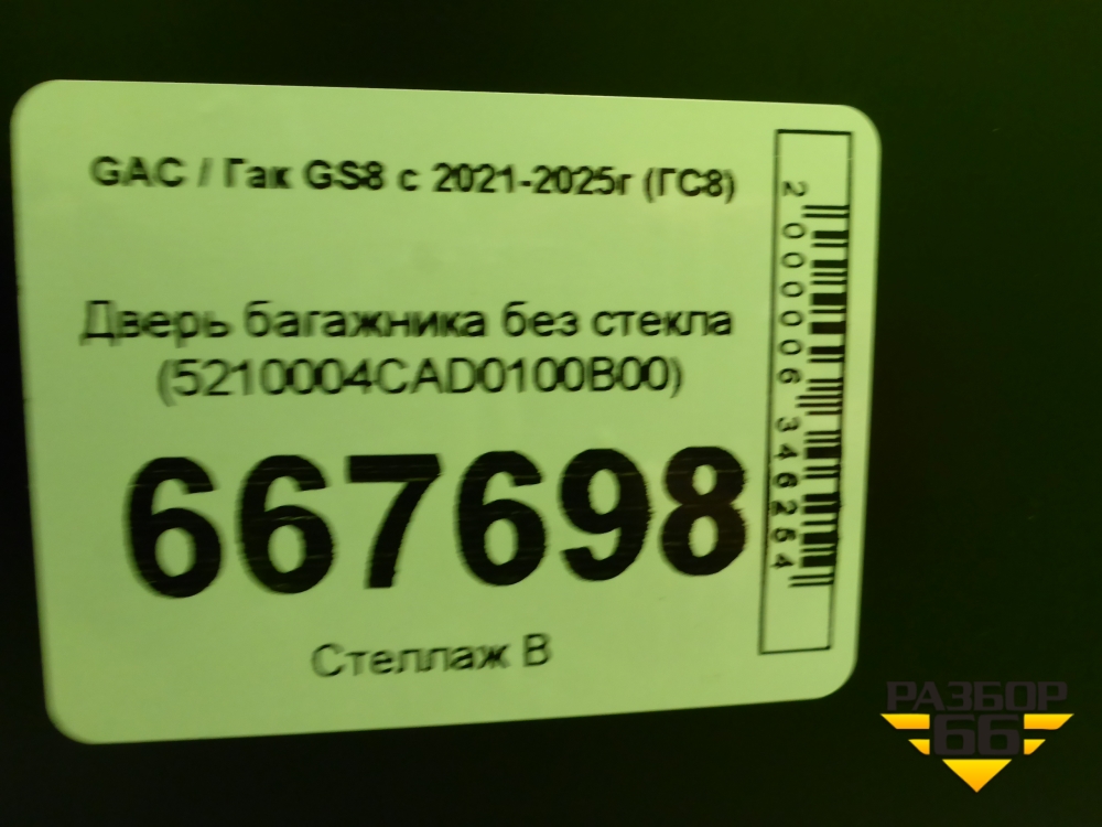 Дверь багажника без стекла (5210004CAD0100B00) для GAC GS8 с 2021-2025г (ГС8) в Перми