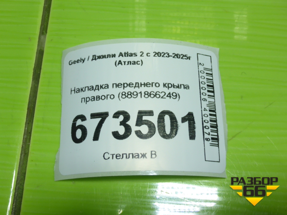 Накладка переднего крыла правого (8891866249) для Geely Atlas 2 с 2023-2025г (Атлас) в Перми