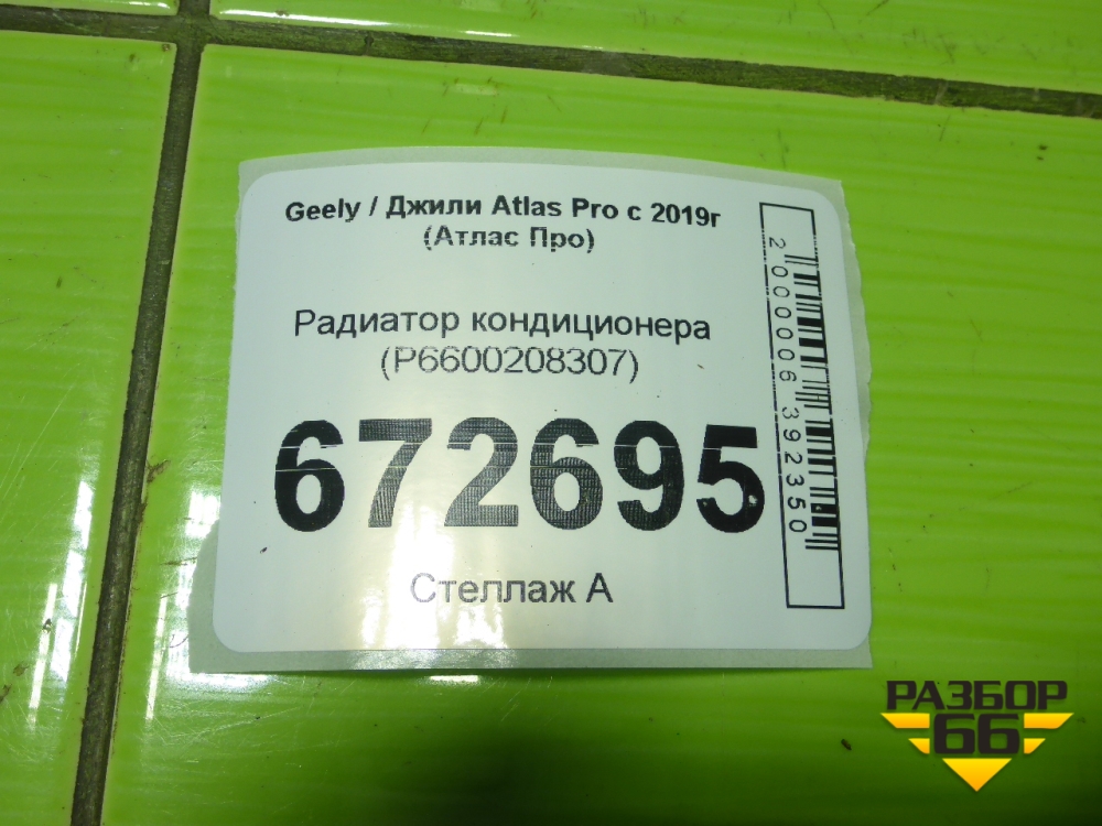 Радиатор кондиционера (P6600208307) для Geely Atlas Pro с 2019г (Атлас Про) в Перми
