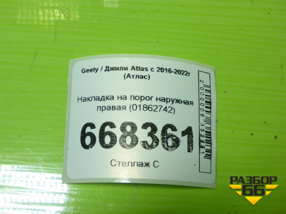 Накладка на порог наружная правая (01862742) для Geely Atlas с 2016-2022г (Атлас) в Перми