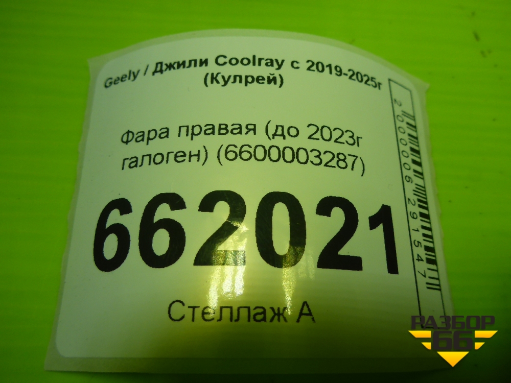 Фара правая (до 2023г галоген) (6600003287) для Geely Coolray с 2019-2025г (Кулрей) в Перми