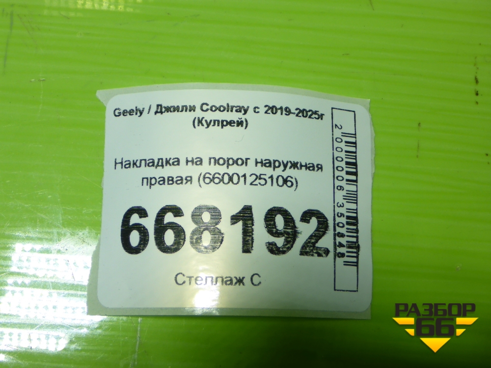 Накладка на порог наружная правая (6600125106) для Geely Coolray с 2019-2025г (Кулрей) в Перми