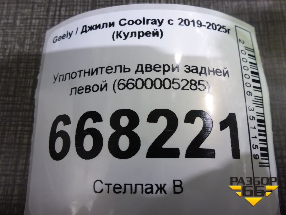 Уплотнитель двери задней левой (6600005285) для Geely Coolray с 2019-2025г (Кулрей) в Перми