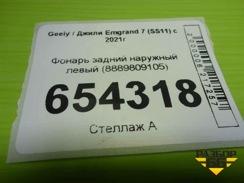 Фонарь задний наружный левый (8889809105) для Geely Emgrand 7 (SS11) с 2021г (Эмгранд) в Перми