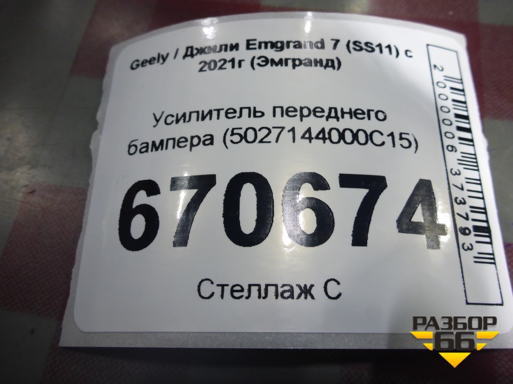 Усилитель переднего бампера (5027144000C15) для Geely Emgrand 7 (SS11) с 2021г (Эмгранд) в Перми