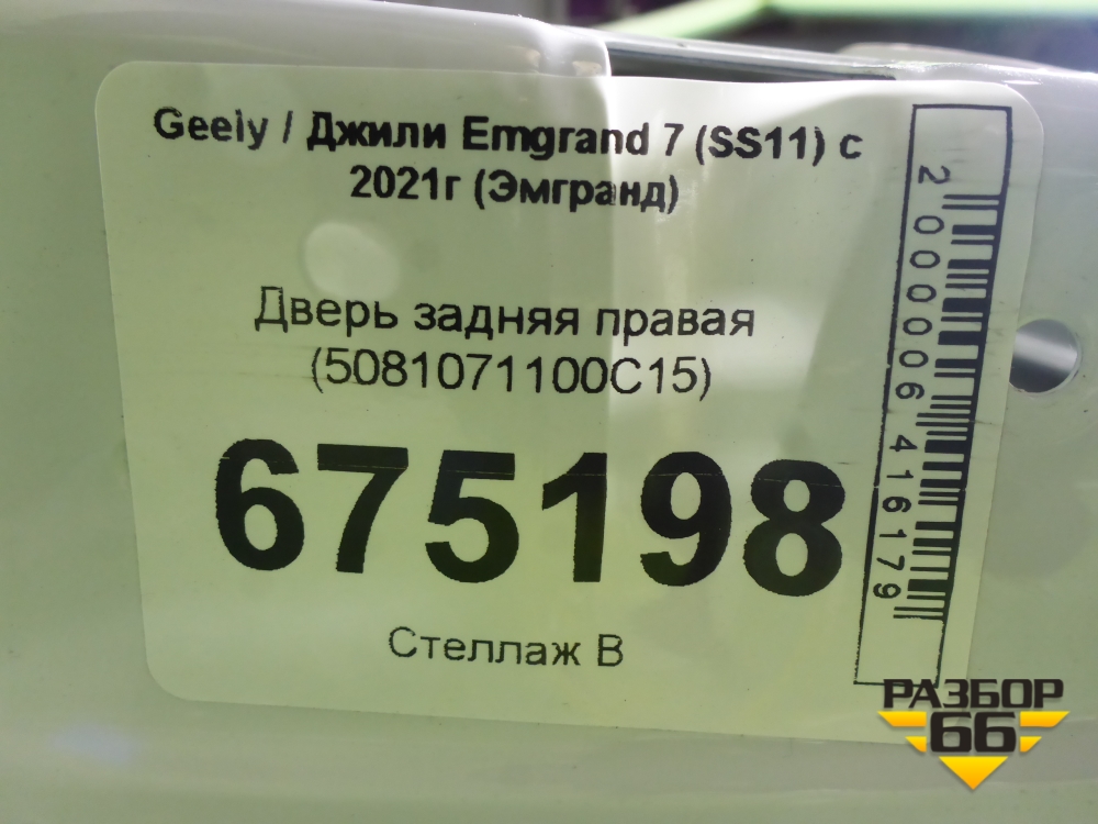 Дверь задняя правая (5081071100C15) для Geely Emgrand 7 (SS11) с 2021г (Эмгранд) в Перми