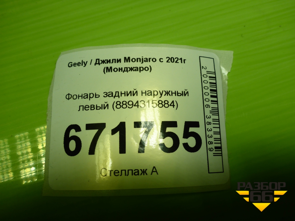 Фонарь задний наружный левый (8894315884) для Geely Monjaro с 2021г (Монджаро) в Перми