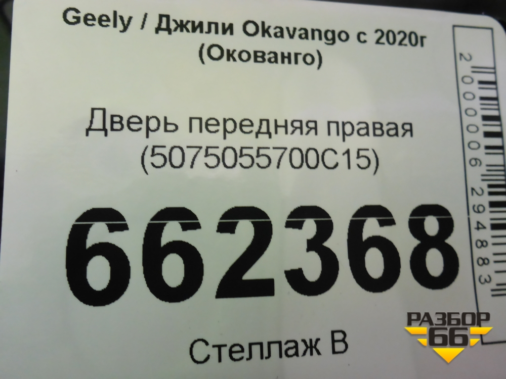 Дверь передняя правая (5075055700C15) для Geely Okavango с 2020г (Окованго) в Перми