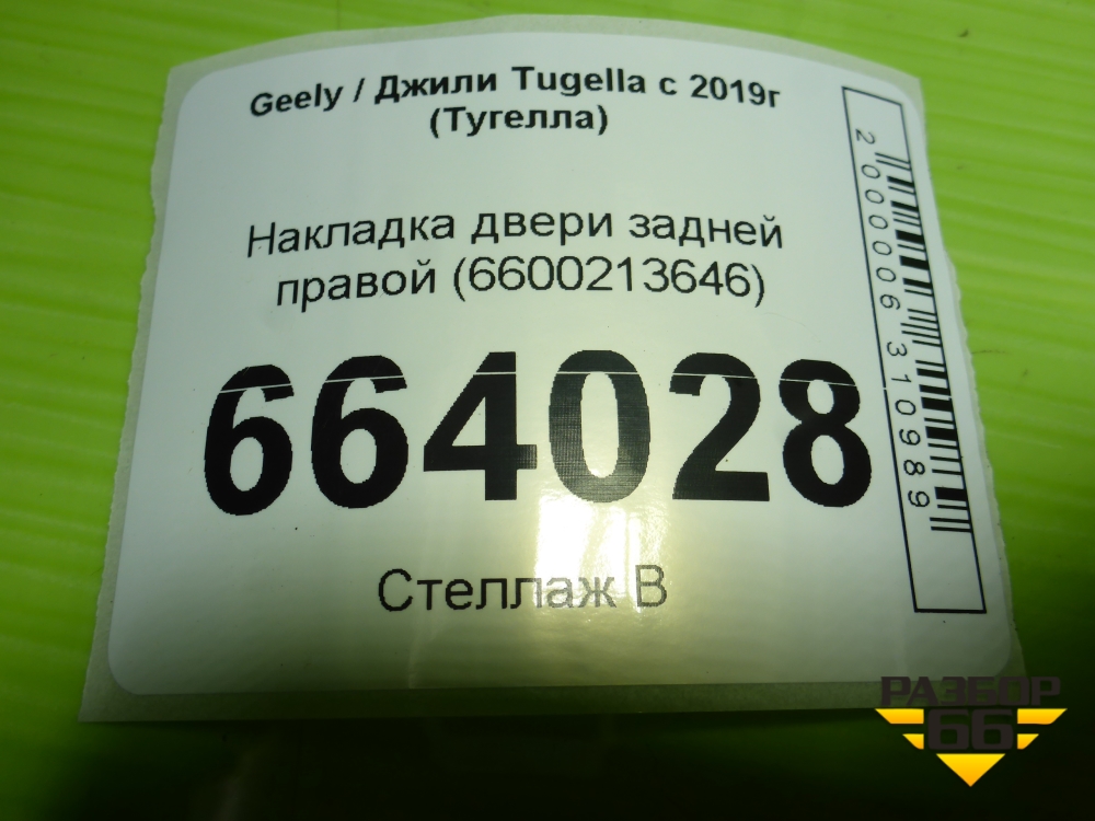 Накладка двери задней правой (6600213646) для Geely Tugella с 2019г (Тугелла) в Перми