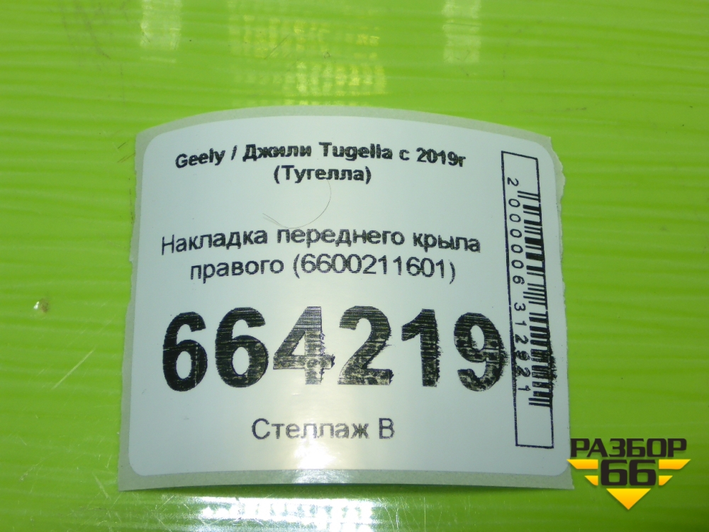 Накладка переднего крыла правого (6600211601) для Geely Tugella с 2019г (Тугелла) в Перми