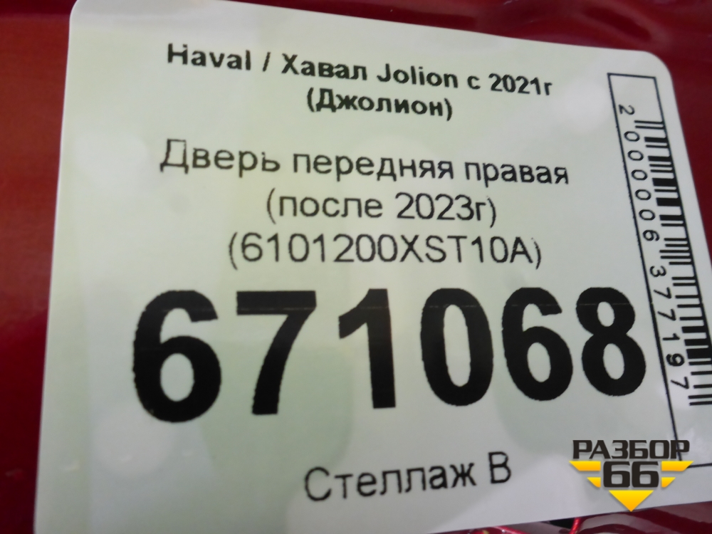 Дверь передняя правая (после 2023г) (6101200XST10A) для Haval Jolion с 2021г (Джолион) в Перми