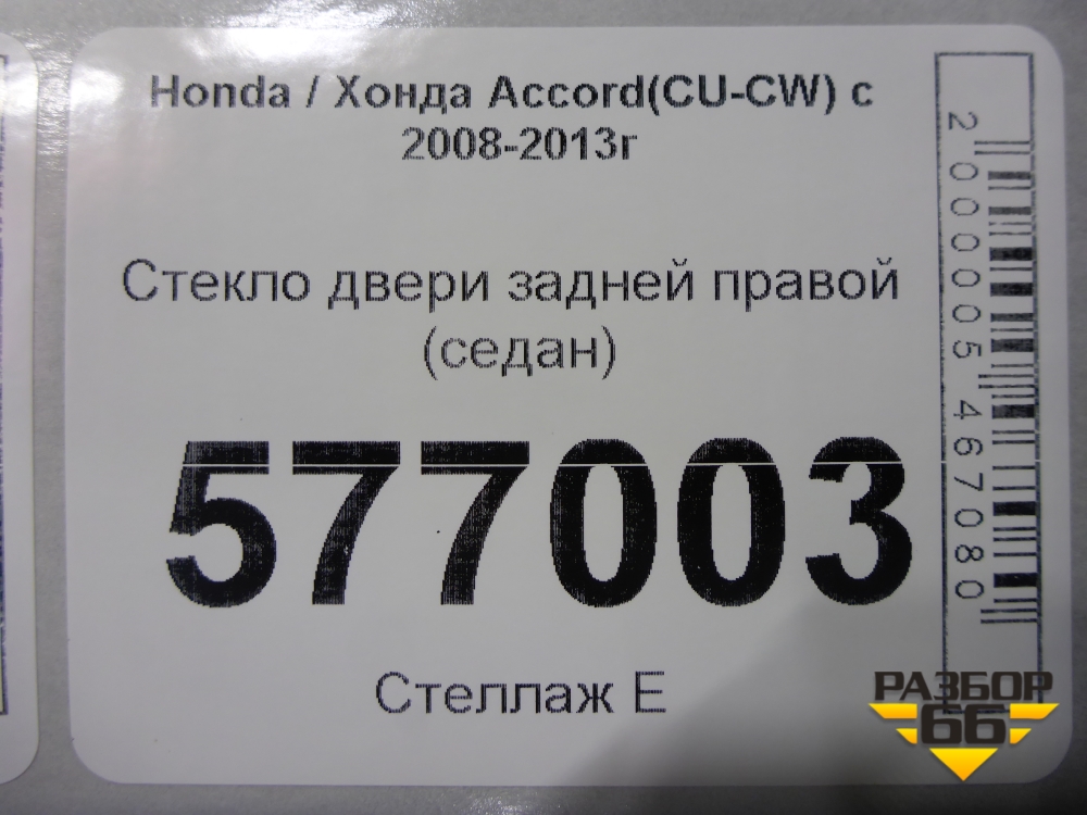 Стекло двери задней правой (седан) для Honda Accord(CU-CW) с 2008-2013г (Аккорд) в Перми
