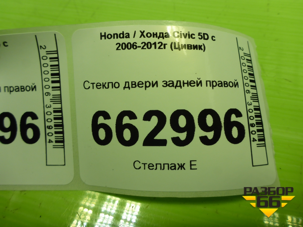 Стекло двери задней правой (73400SMGE00) для Honda Civic 5D с 2005-2011г (Цивик) в Перми