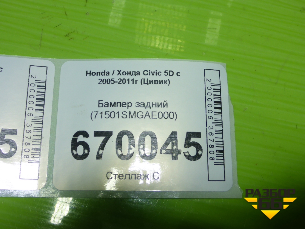 Бампер задний (71501SMGAE000) для Honda Civic 5D с 2005-2011г (Цивик) в Перми