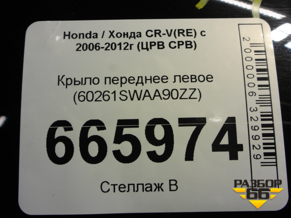 Крыло переднее левое (60261SWAA90ZZ) для Honda CR-V(RE) с 2006-2012г (ЦРВ СРВ) в Перми