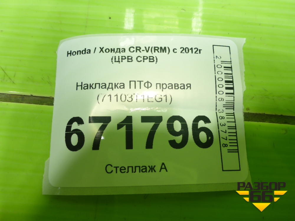 Накладка ПТФ правая (71103T1EG1) для Honda CR-V(RM) с 2012г (ЦРВ СРВ) в Перми