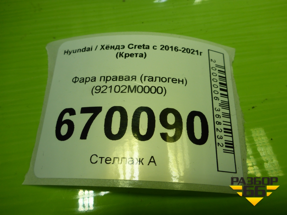 Фара правая (галоген) (92102M0000) для Hyundai Creta с 2016-2021г (Крета) в Перми