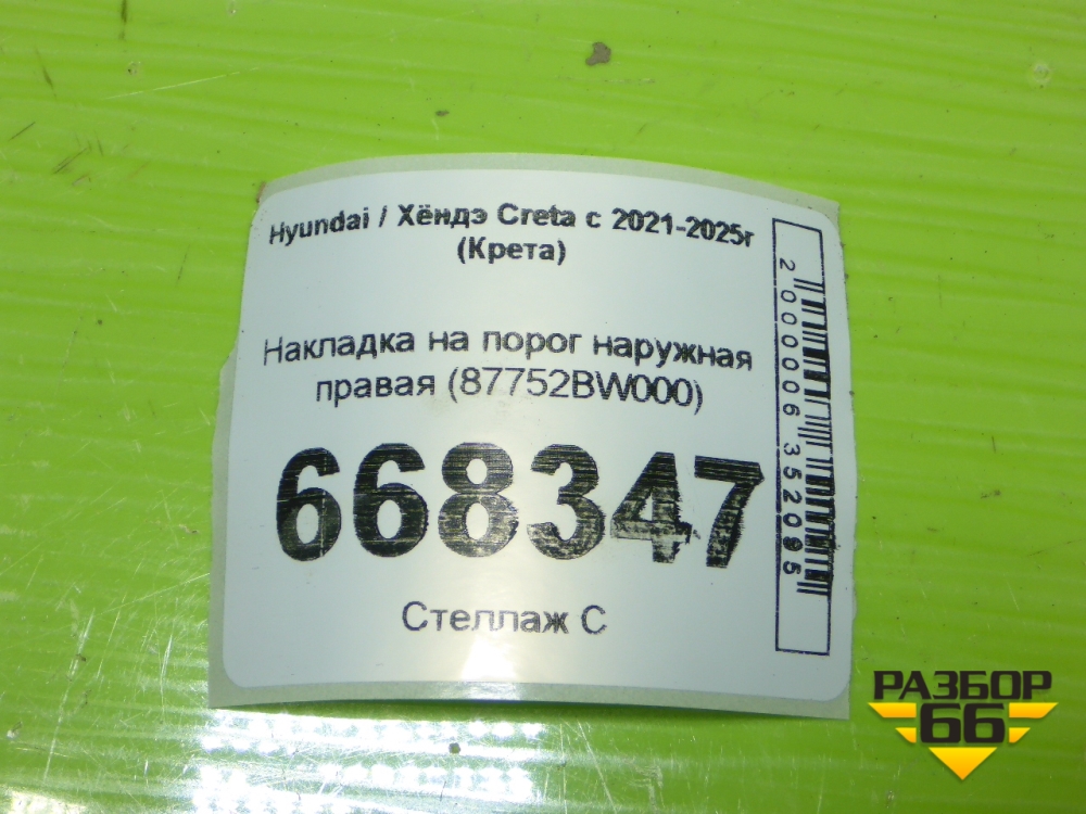 Накладка на порог наружная правая (87752BW000) для Hyundai Creta с 2021-2025г (Крета) в Перми