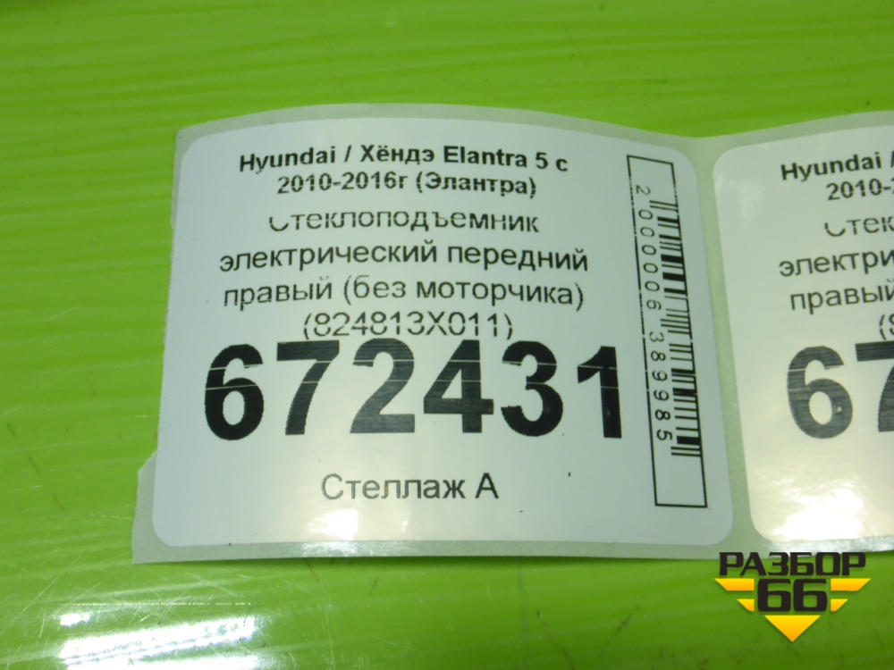 Стеклоподъёмник электрический передний правый (без моторчика) (824813X011) для Hyundai Elantra 5 с 2010-2016г (Элантра) в Перми