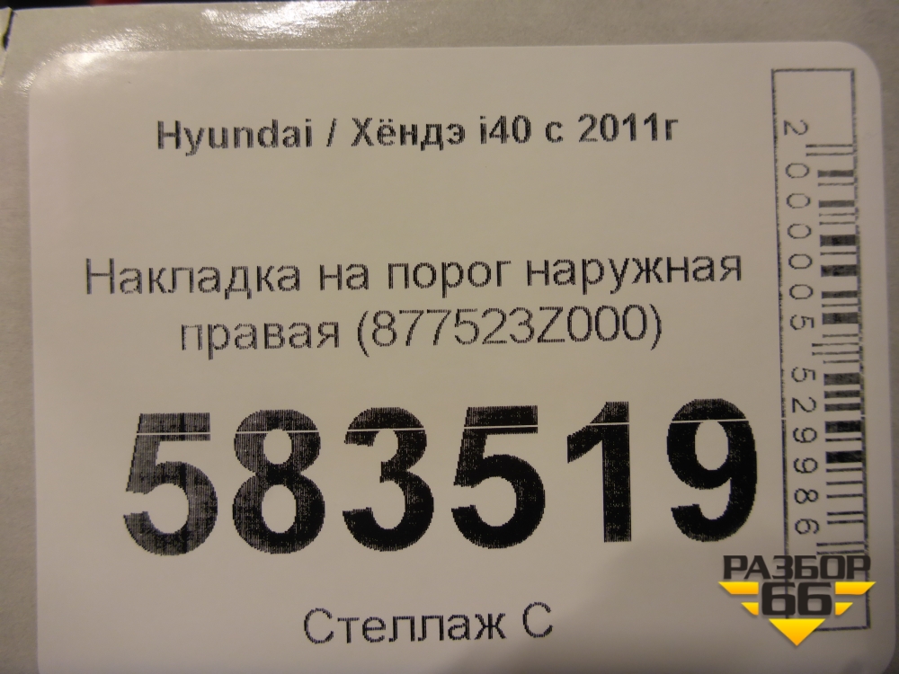Накладка на порог наружная правая (877523Z000) для Hyundai i40 с 2011г (Ай40) в Перми
