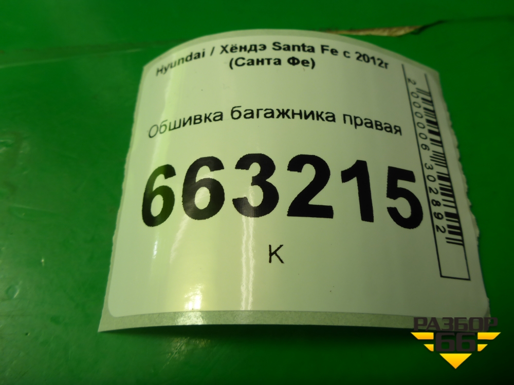 Обшивка багажника правая (нижняя) (857412W000) для Hyundai Santa Fe с 2012-2018г (Санта Фе) в Перми
