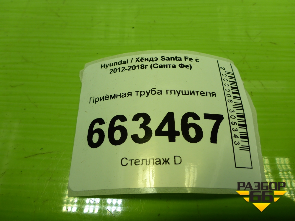 Приёмная труба глушителя (2.4л G4KE) (286102W300) для Hyundai Santa Fe с 2012-2018г (Санта Фе) в Перми