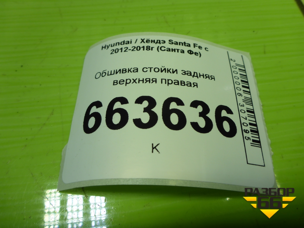 Обшивка стойки задняя верхняя правая (858602W200) для Hyundai Santa Fe с 2012-2018г (Санта Фе) в Перми