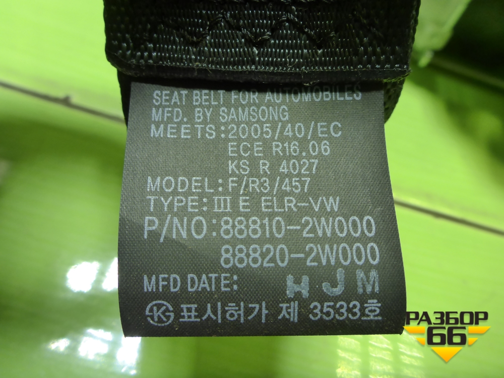 Ремень безопасности передний правый с пиропатроном (888102W000) для Hyundai Santa Fe с 2012-2018г (Санта Фе) в Перми