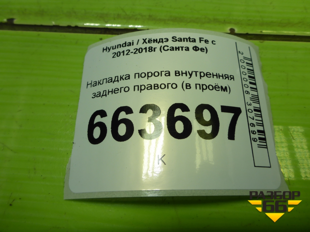 Накладка порога внутренняя заднего правого (в проём) (858892W500) для Hyundai Santa Fe с 2012-2018г (Санта Фе) в Перми