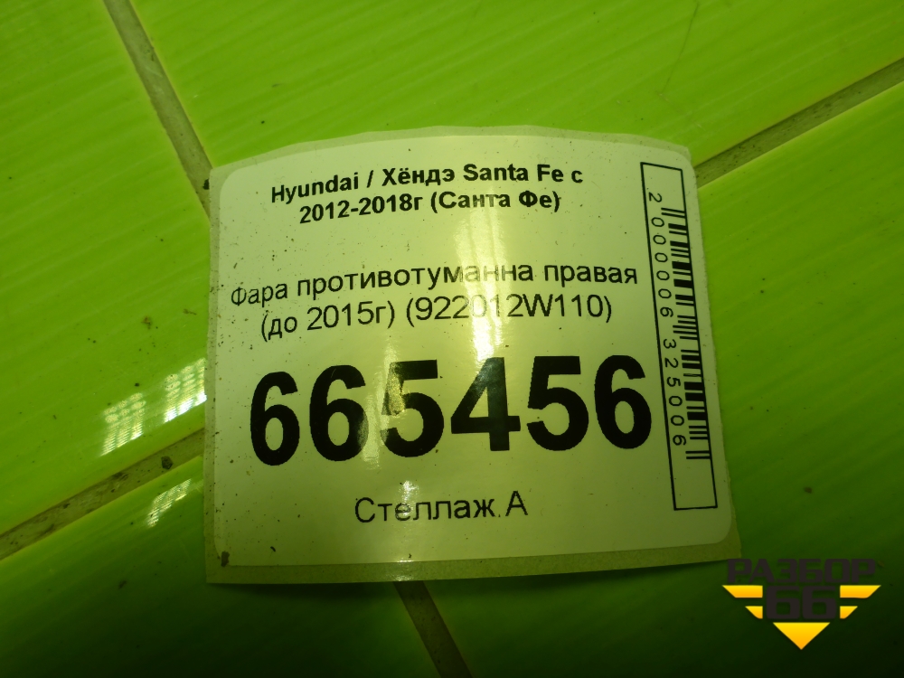 Фара противотуманна правая (до 2015г) (922012W110) для Hyundai Santa Fe с 2012-2018г (Санта Фе) в Перми