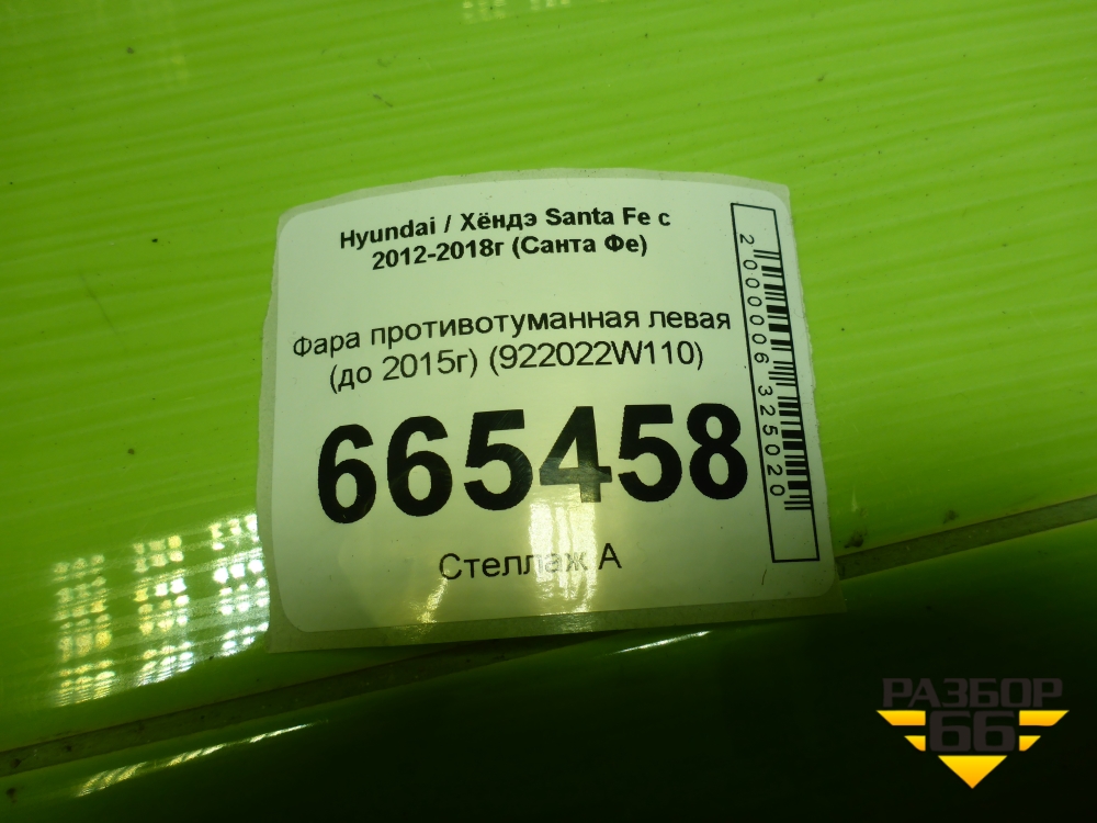 Фара противотуманная левая (до 2015г) (922022W110) для Hyundai Santa Fe с 2012-2018г (Санта Фе) в Перми