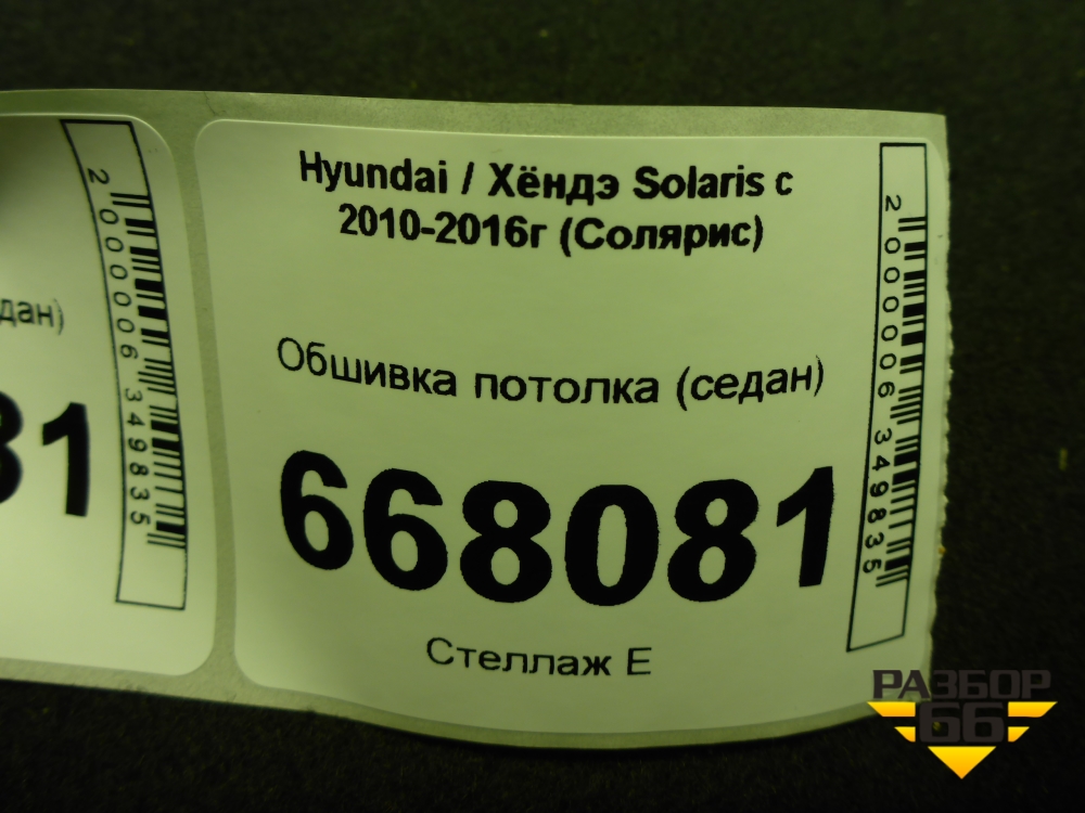 Обшивка потолка (седан) для Hyundai Solaris с 2010-2016г (Солярис) в Перми
