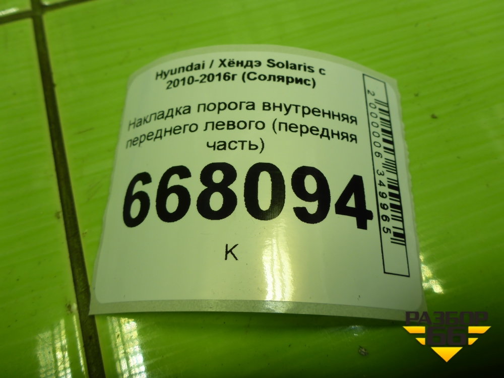 Накладка порога внутренняя переднего левого (передняя часть) (858231R000) для Hyundai Solaris с 2010-2016г (Солярис) в Перми