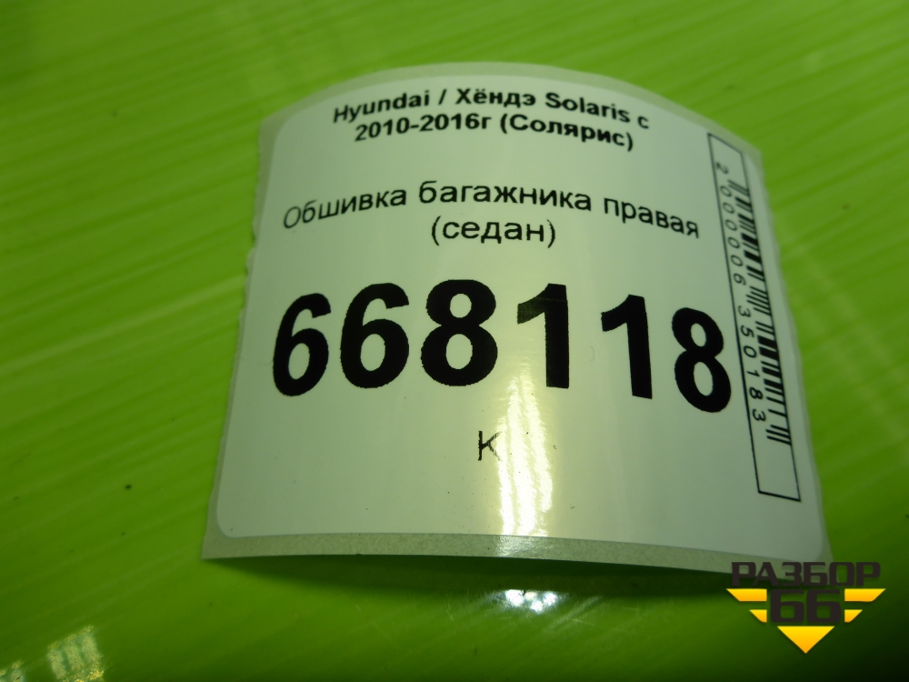 Обшивка багажника правая (седан) для Hyundai Solaris с 2010-2016г (Солярис) в Перми