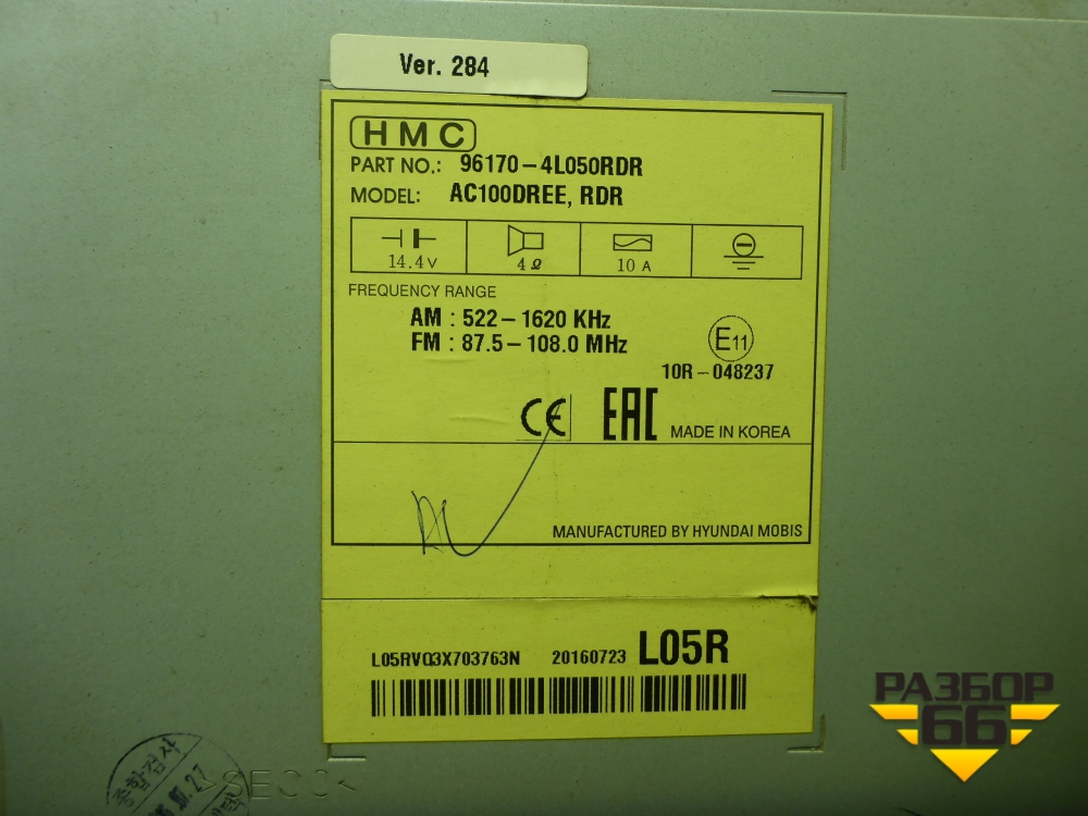 Магнитола (961704L050RDR) для Hyundai Solaris с 2010-2016г (Солярис) в Перми