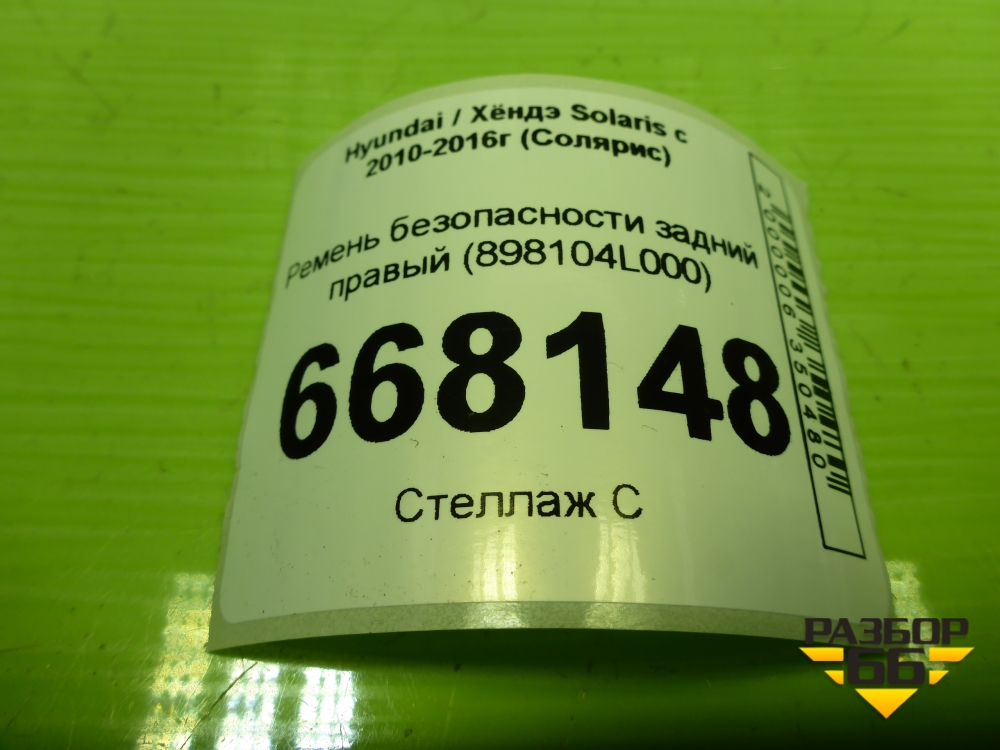 Ремень безопасности задний правый (898104L000) для Hyundai Solaris с 2010-2016г (Солярис) в Перми