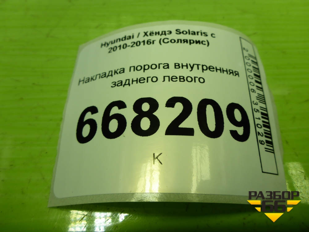 Накладка порога внутренняя заднего левого (858761R000) для Hyundai Solaris с 2010-2016г (Солярис) в Перми
