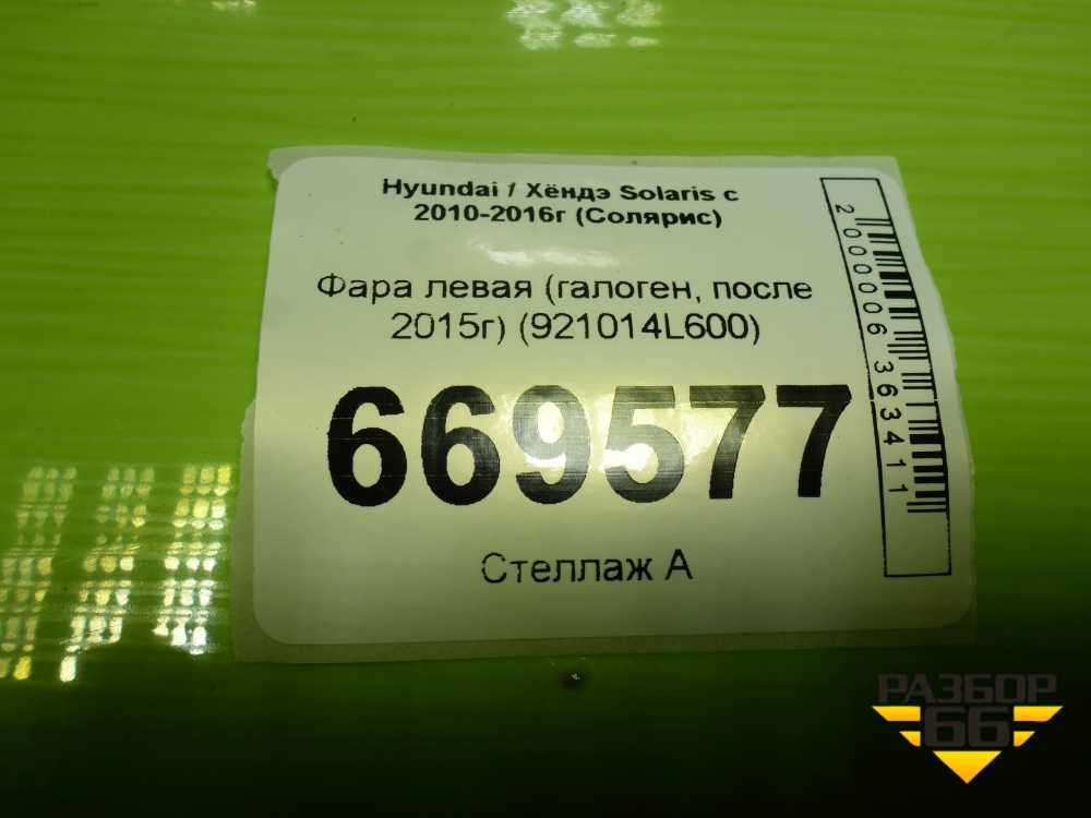 Фара левая (после 2014г галоген) (921014L600) для Hyundai Solaris с 2010-2016г (Солярис) в Перми