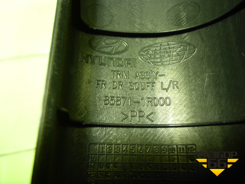 Накладка порога внутренняя переднего левого (858711R000) для Hyundai Solaris с 2010-2016г (Солярис) в Перми
