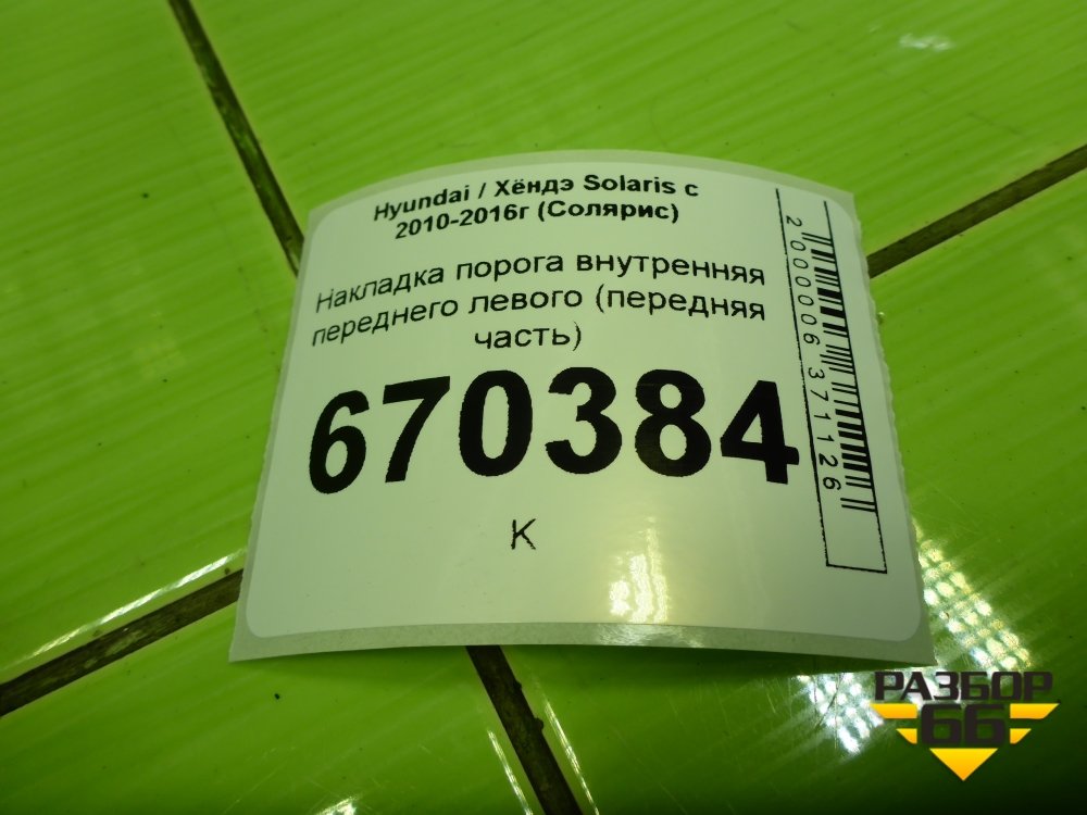 Накладка порога внутренняя переднего левого (передняя часть) (858231R000) для Hyundai Solaris с 2010-2016г (Солярис) в Перми