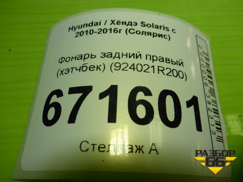Фонарь задний правый (хэтчбек) (924021R200) для Hyundai Solaris с 2010-2016г (Солярис) в Перми