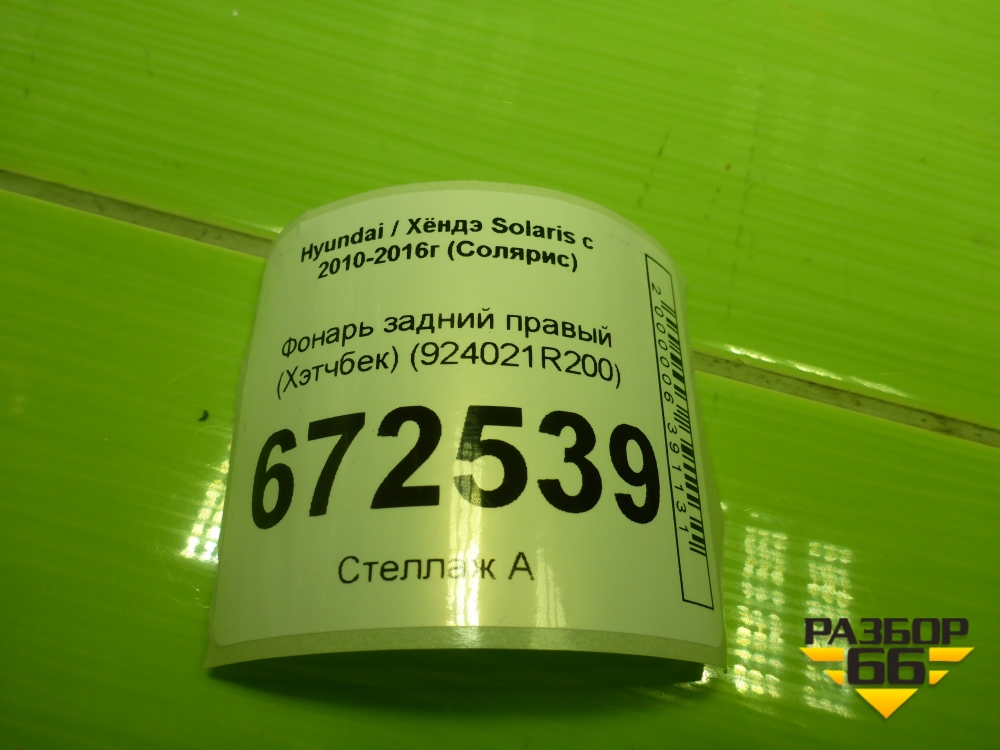 Фонарь задний правый (хэтчбек) (924021R200) для Hyundai Solaris с 2010-2016г (Солярис) в Перми